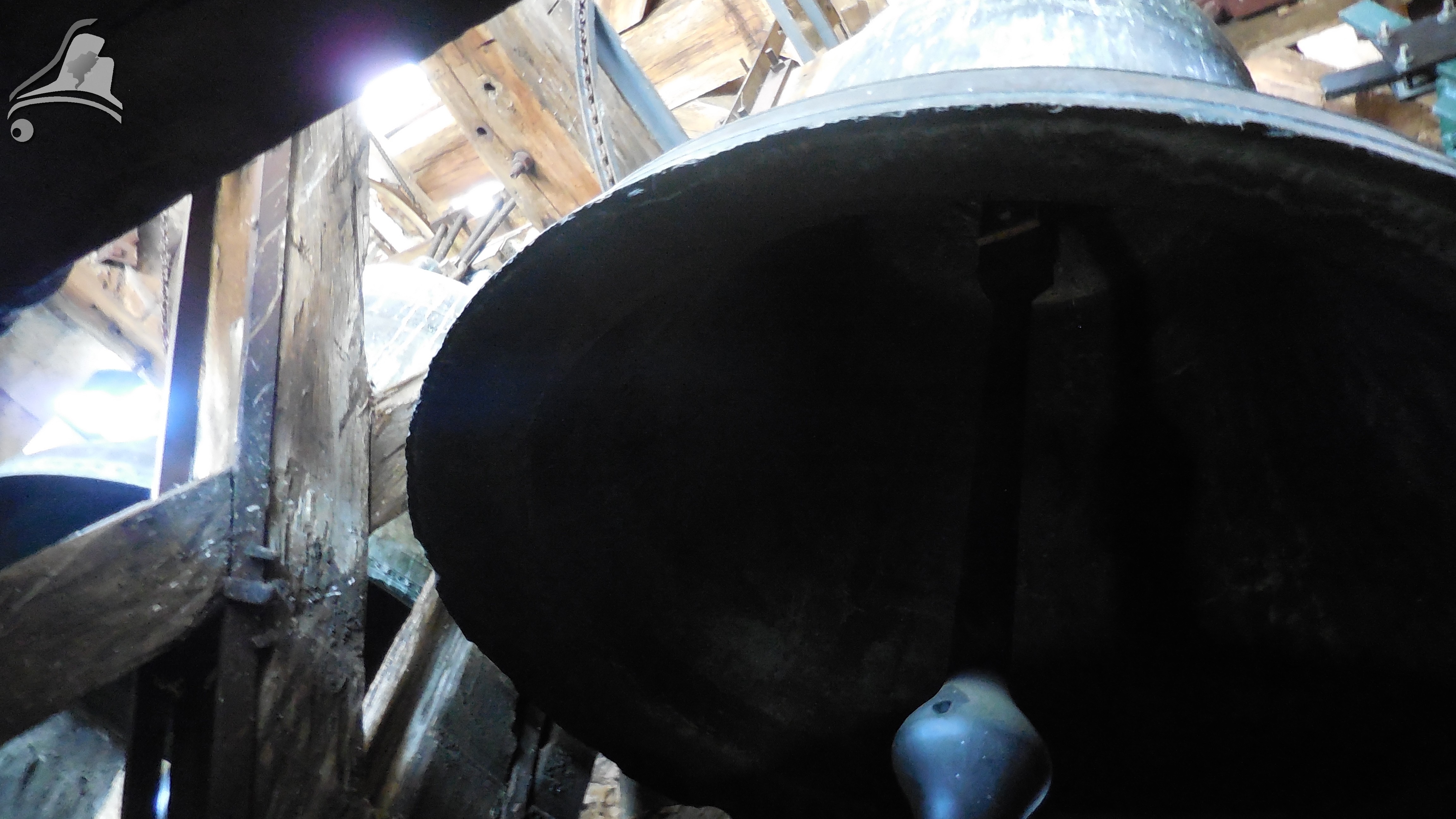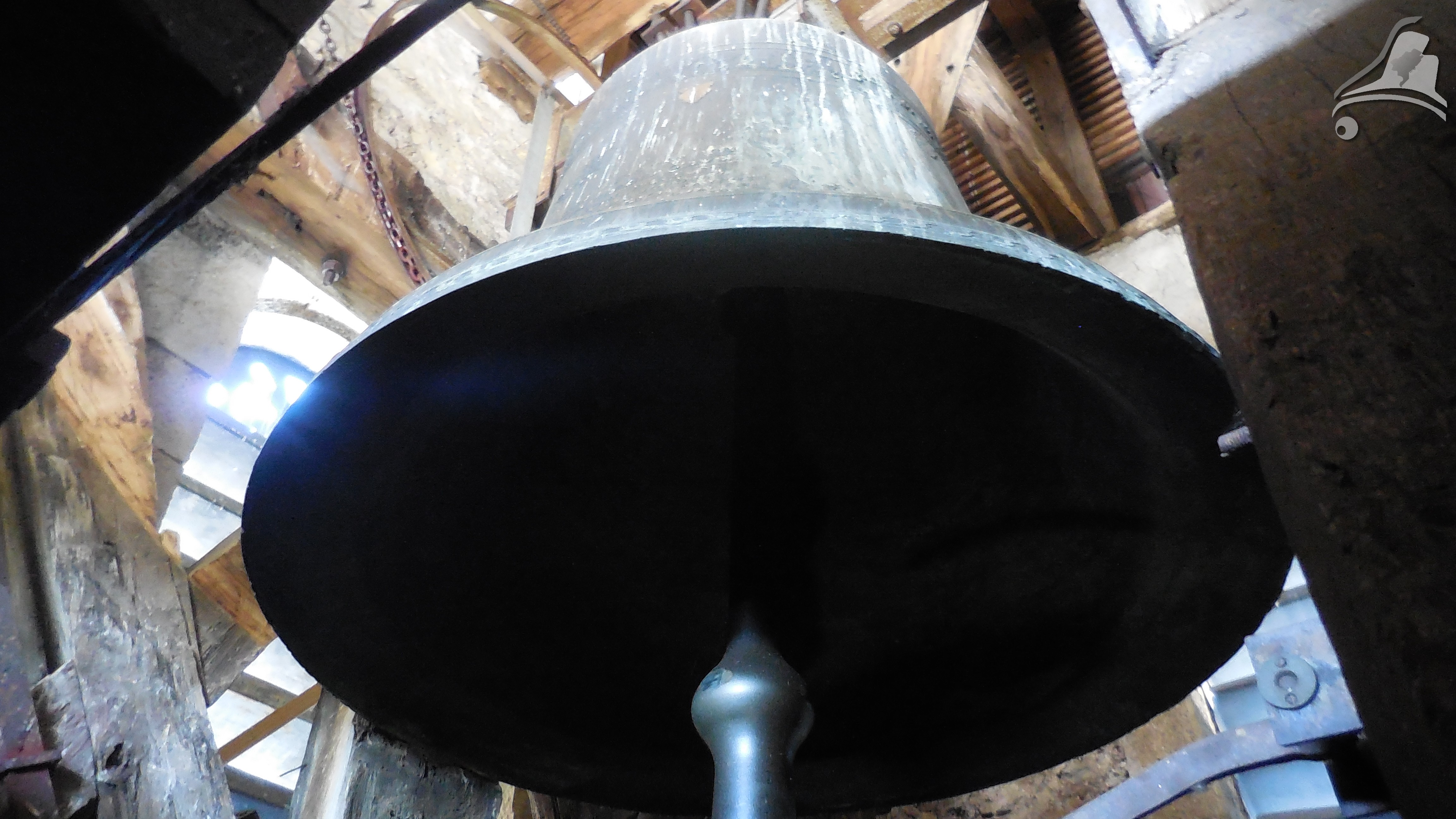 Parlons des cloches, cette édifice abrite 2 cloches, des cloches imposantes lorsque l’on voit la taille du clocher, de ce fait, nous pouvons aperçevoire (ce qui semblerais être) des renforts métallique pour renforcer la tour.