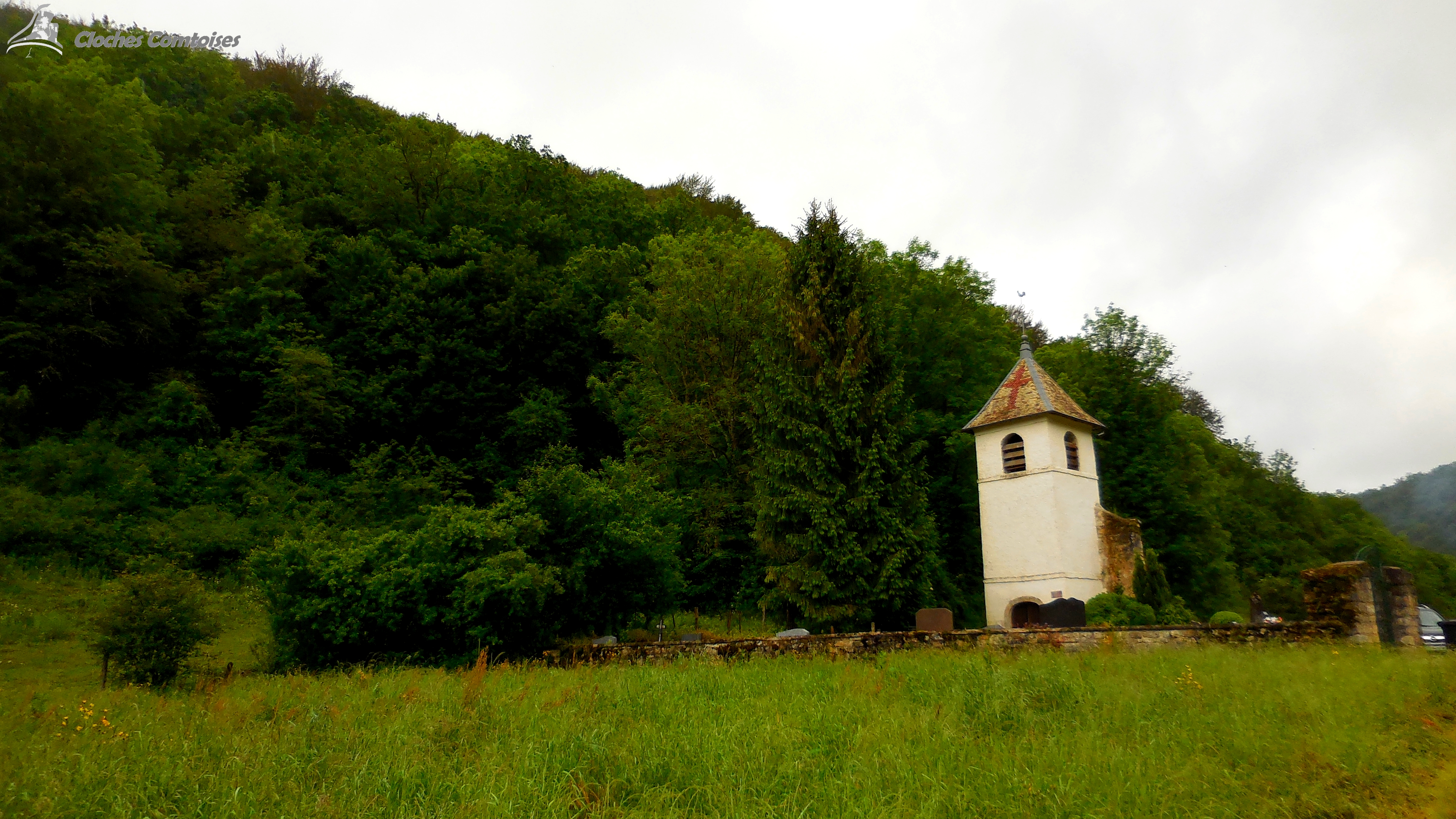 Pour la trouver, il faut, depuis l’église de Bonnevaux-Du-Haut, prendre la route d’Ornans, continuez sur cette route aux multiples virages sur 5 km, et vous y êtes, les vestiges de cette ancienne église ne sont représentées que par son clocher, nous pouvons encore voir quelques murs de la nef… Ce clocher, date du 12e siècle, il a traversé les guerres, la révolution et la nature.