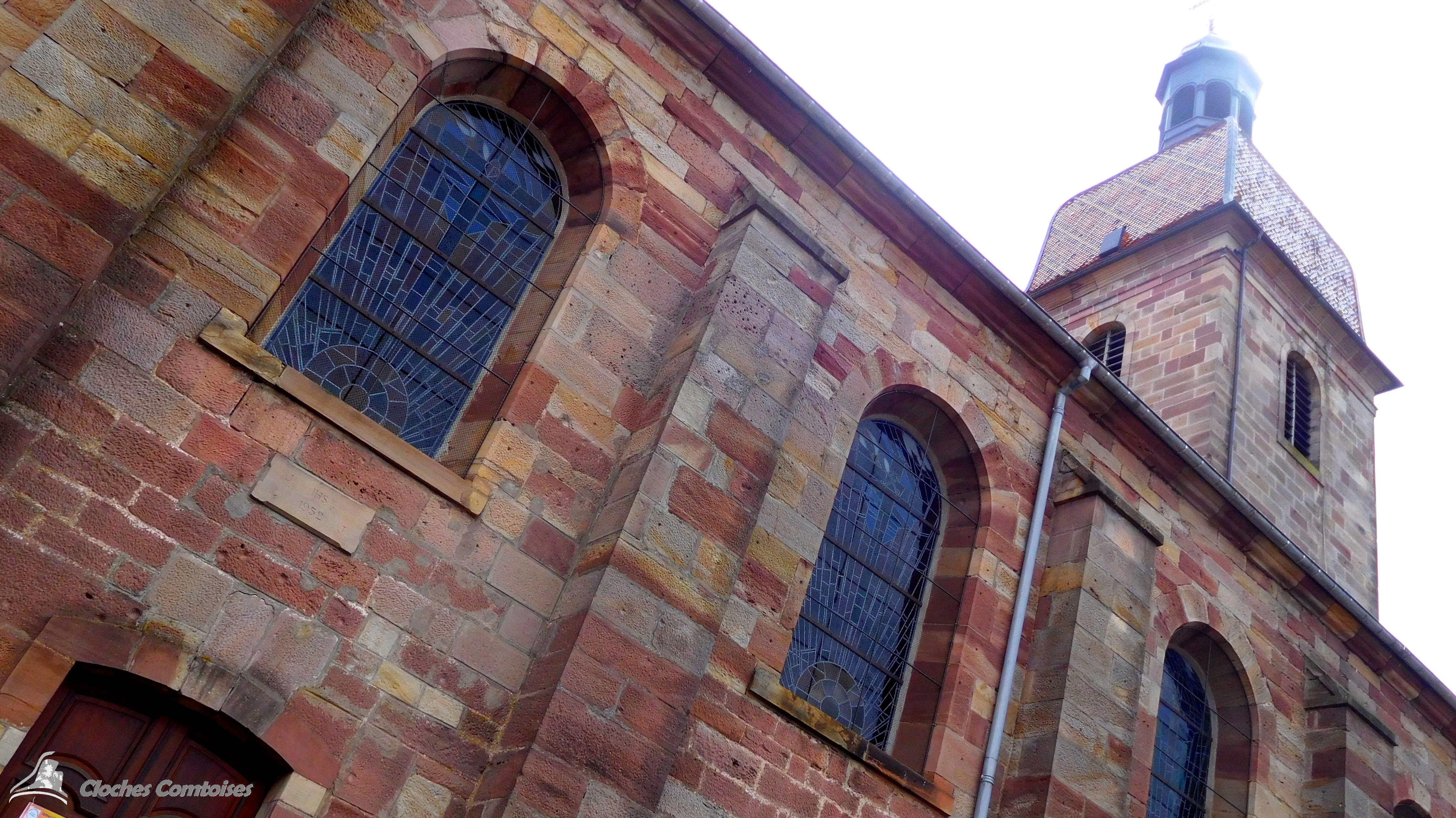 De l’extérieur on peut admirer le clocher de style comtois qui contient un carillon de 35 cloches (31 fixes et 4 de volées) restaurées au cours des dernières années, dont voici les quelques photos: (Cliquez sur les photos pour agrandir)