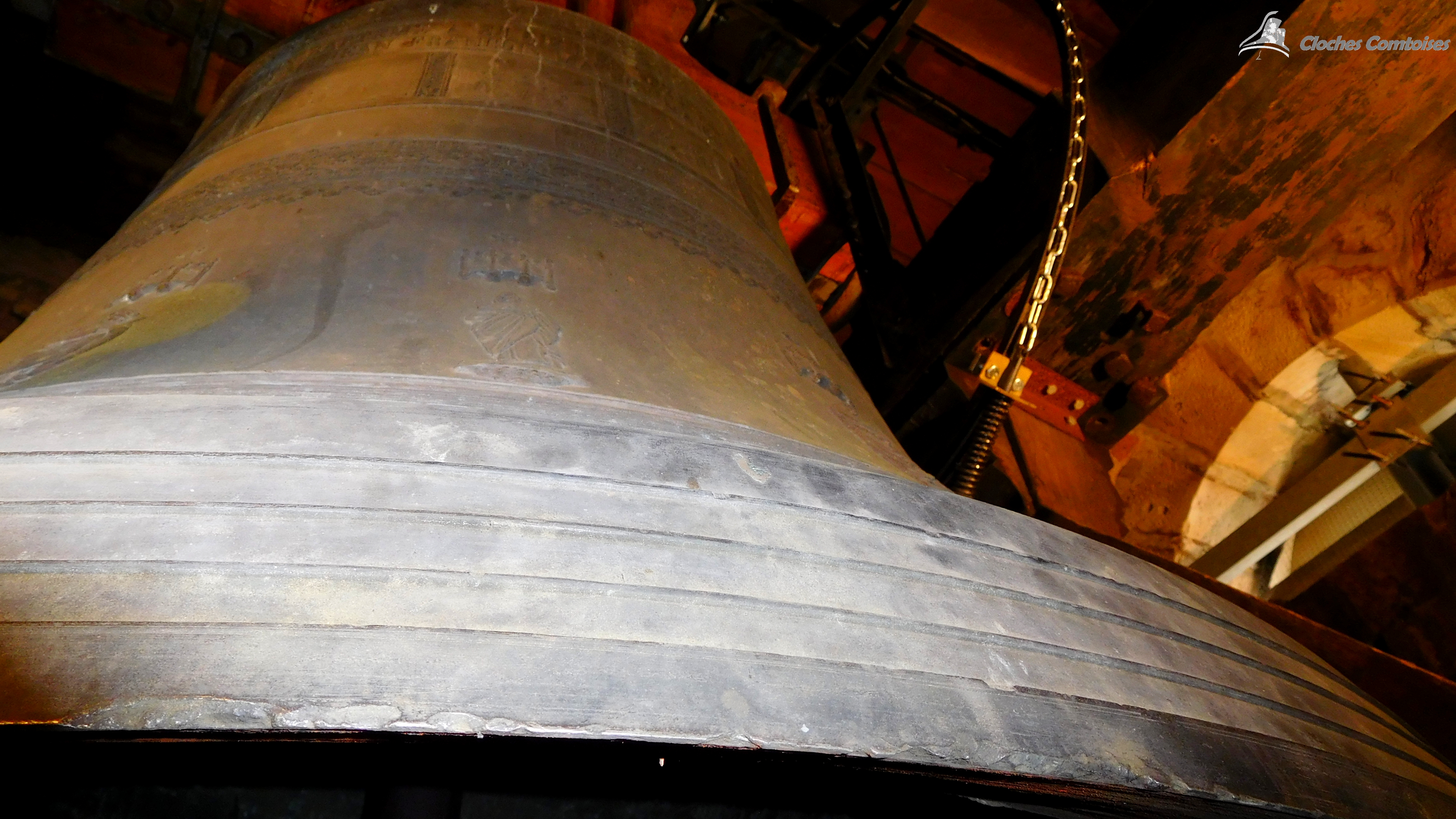 Cloche 3: « Clémentine », Diamètre 119,3 cm, Poids 990 kg, fondue par J. Goussel, à Metz, en 1 873, Chante le Ré#3