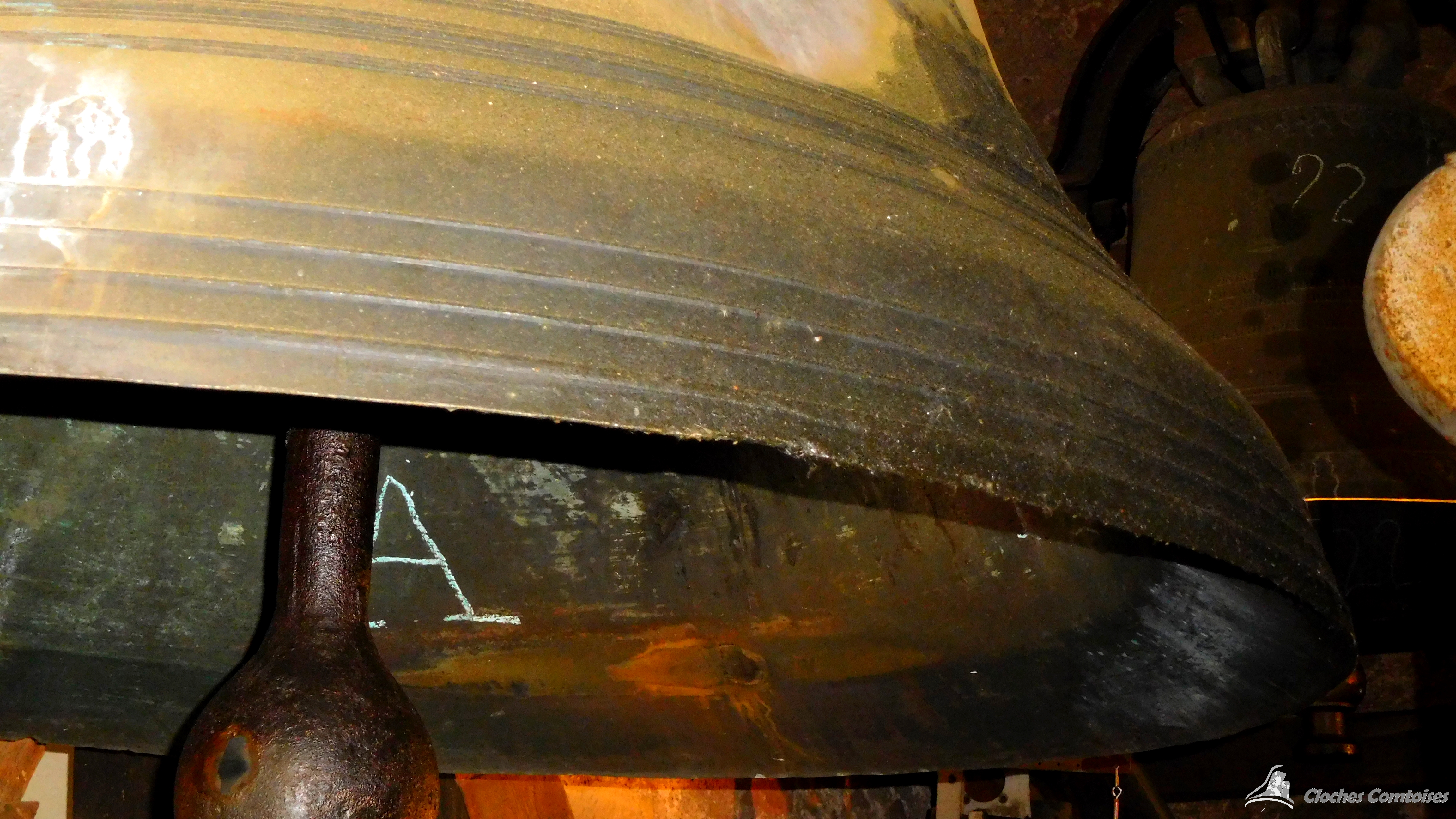 Cloche 4: « Usine-Dorget », Diamètre 100,2 cm, Poids 615 kg, Fondue par Paccard, à Annecy-Le-Vieux, en 1 929, Chante le Fa#3 (faussée)