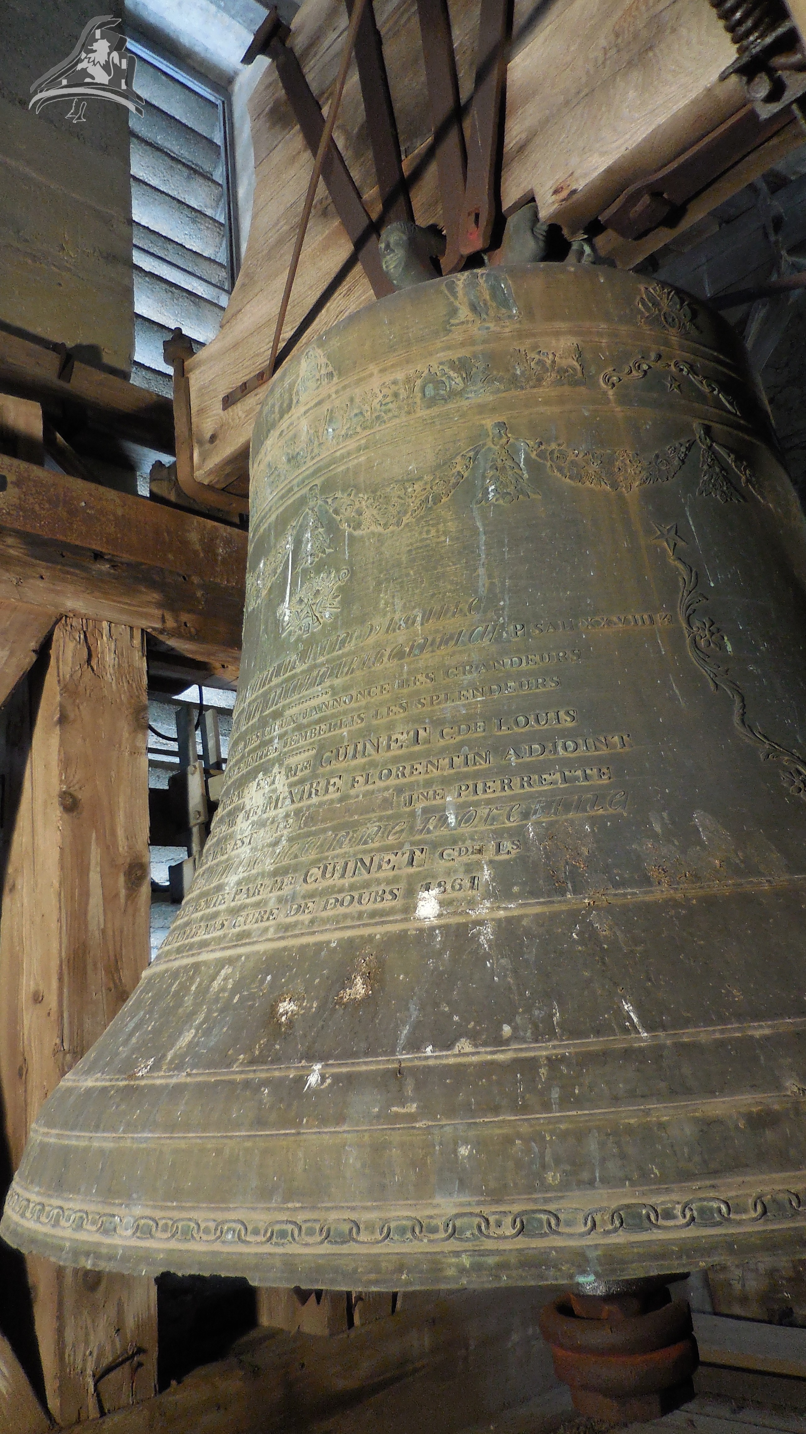 Cloche 1: « Louise-Jeanne-Floretine », Diamètre 157,7 cm, Poids 2 311 kg, Fondue par François Humbert, à Morteau en 1861, Chante le Si2
