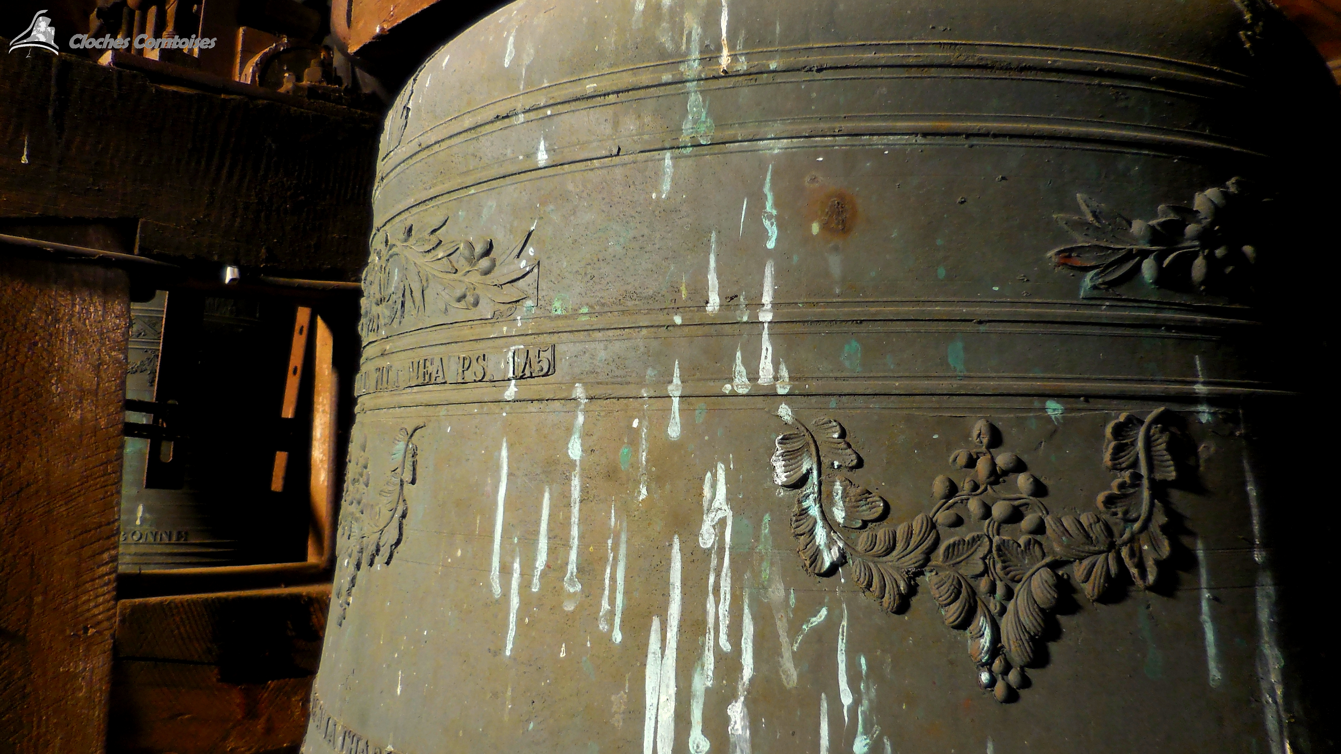 Cloche 1: « Léonie-Marie-Antoinette », Diamètre 95.3, Poids 460 kg, Fondue par Bournez à Morteau, En 1 889, Chante le Fa#3
