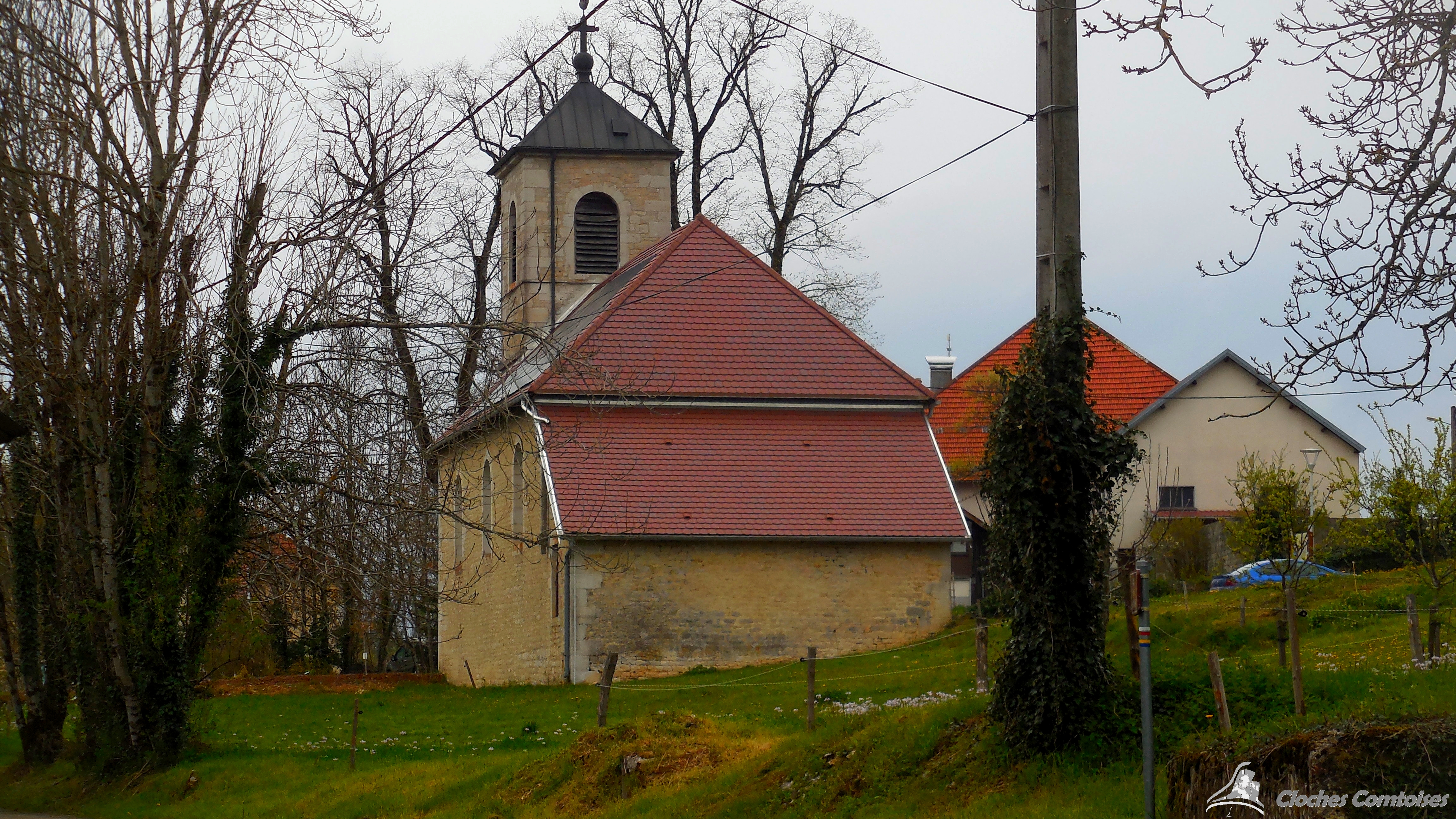 L’église date de 1 830, une charmante petite église qui n’en reste pas moins intéressante, son petit clocher pointu, qui élève l’église à 15 mètres, fut refait il y a quelques années, les tuiles de la partie nef ont été changées, et très récemment, des panneaux photovoltaïque y ont été installés, ce qui prouve que ce petit village a une volonté de préserver l’environnement.