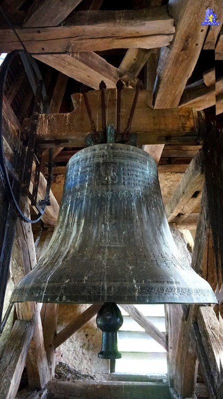 Commençons la présentation de ce qui se cache sous ce clocher aux tuiles vernissées, nous avons là une seule cloche, dans un beffroi bien ravagé par le temps, mais qui a été amplement renforcé, cette belle cloche au modeste poids de 1 030 kg, a été fondue par Monsieur Ferdinand Farnier, elle a été fondue à Robécourt, dans les Vosges, c’est donc, une cloche lorraine. Du drôle de nom de « Eulalie-Lucie », elle sait se faire entendre pour les angélus, les offices ou les jours plus sombre, de sa douce voix en Mib3.. Selon les dires des certaines personnes, avant les travaux de restauration d’une autre époque (je ne connais plus la date exacte, pardonnez-moi), elle fut retirée pour je ne sais quelle raison, les traces de cette cloche sont évidentes, celle-ci était bien plus petite, et selon le site de la commune, elle était datée de l’an 1 824.
