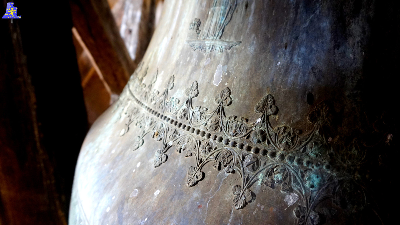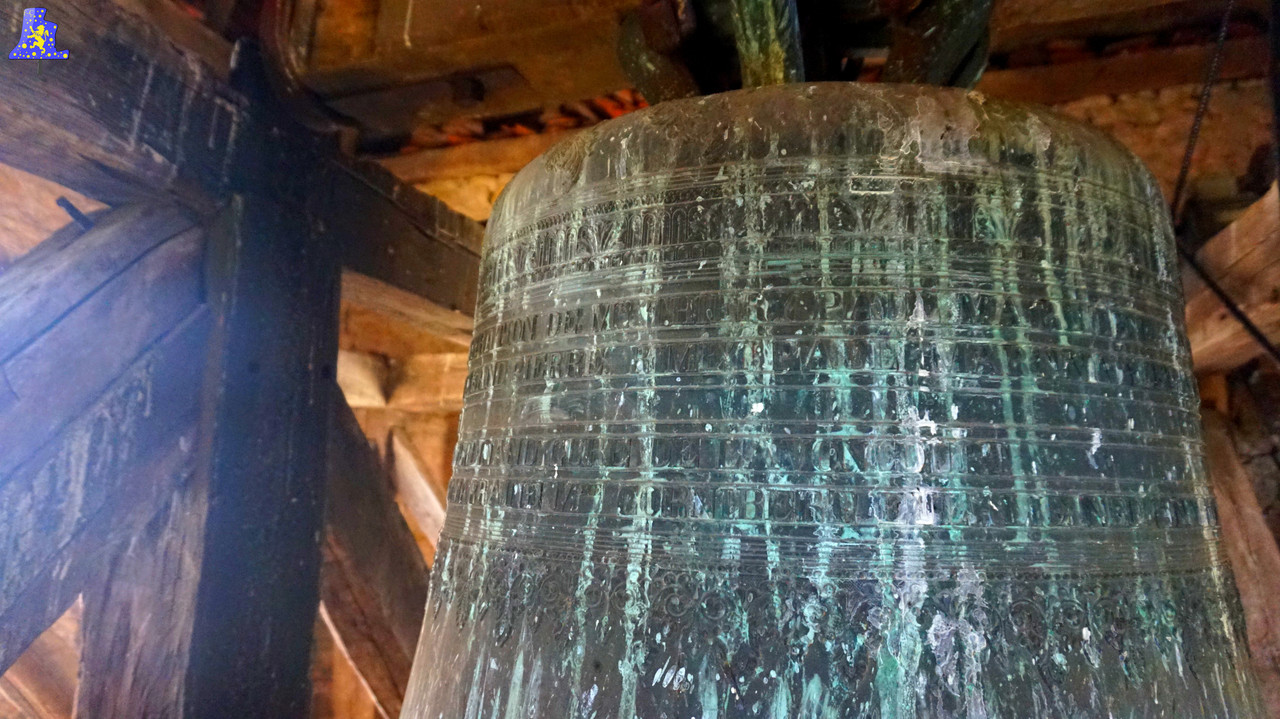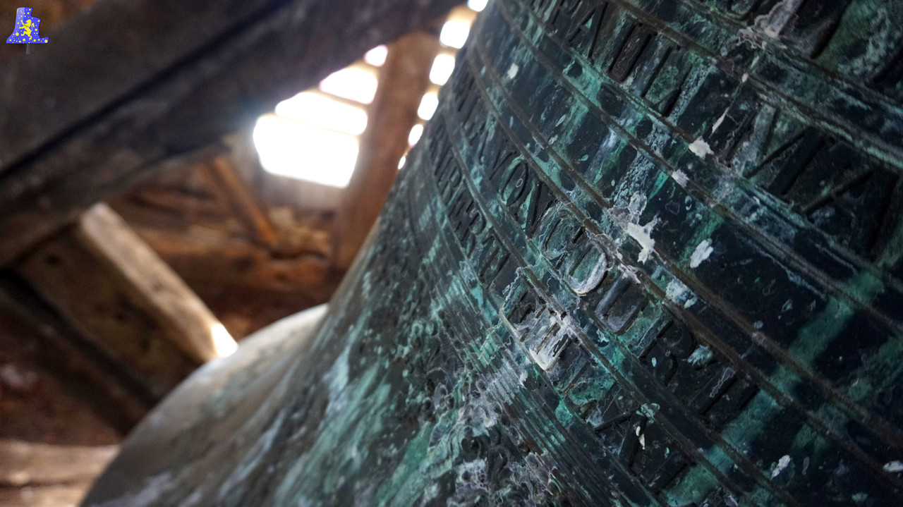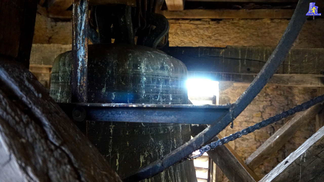 Elle débute en entrant dans l’église, une porte nous est à prendre, elle est située sur le côté de la nef, celle-ci nous mène directement dans la tour, prenons par la suite, un escalier de pierres assez étroit afin d’arriver sur le premier plancher, juste au-dessus de la nef. De là, la partie devient un chouïa plus scabreuse, puisqu’il nous faudra gravir deux échelles métalliques de 5 mètres chacune, une fois gravies, nous avons la chance de pouvoir admirer cette cloche.