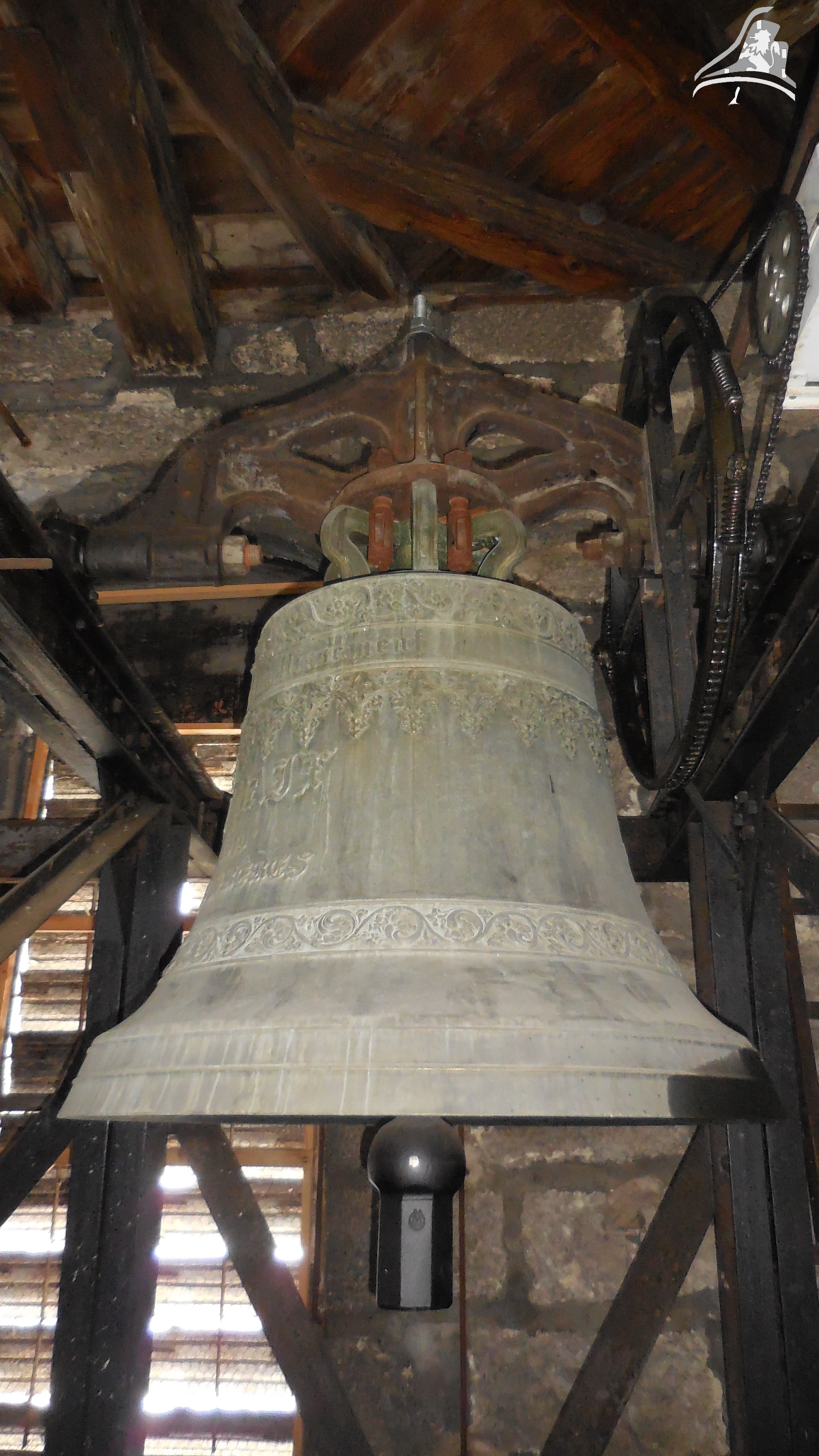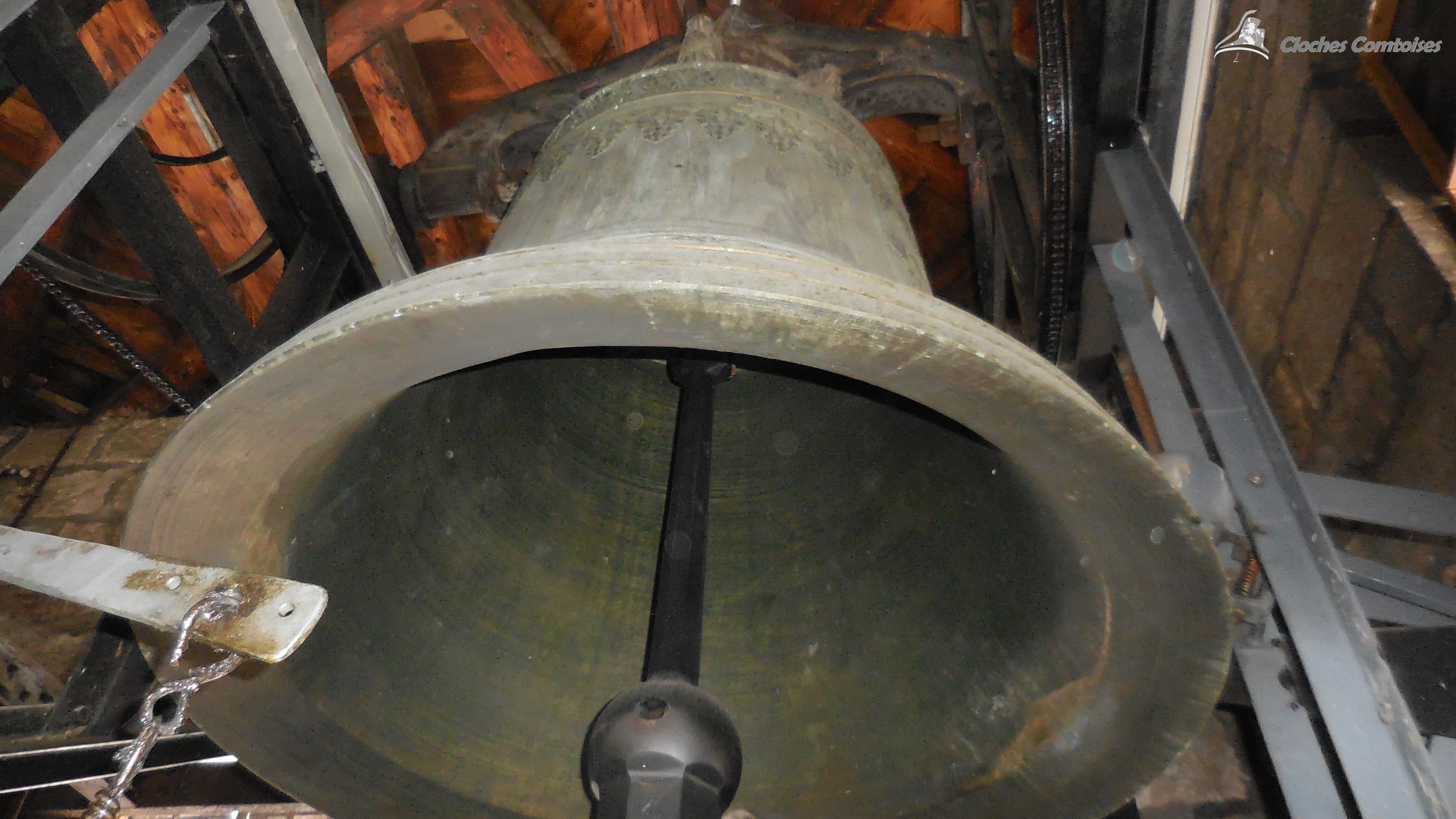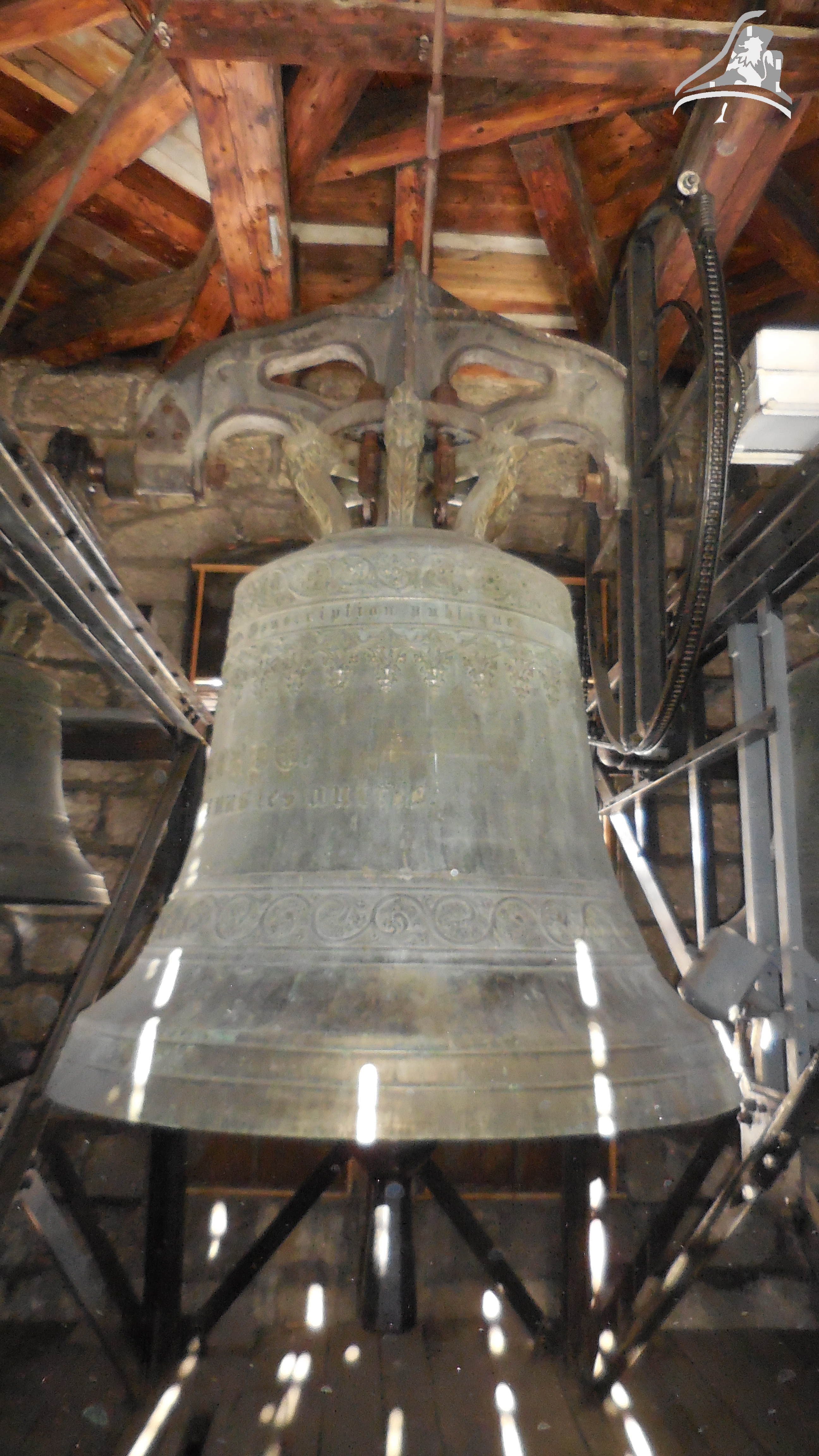 Cloche 3: « Guillemette-De-Vergy » Diamètre 115 cm environ, Poids 975 kg, Fondue par Ruetschi Aarau en 1 897, Chante le Fa3