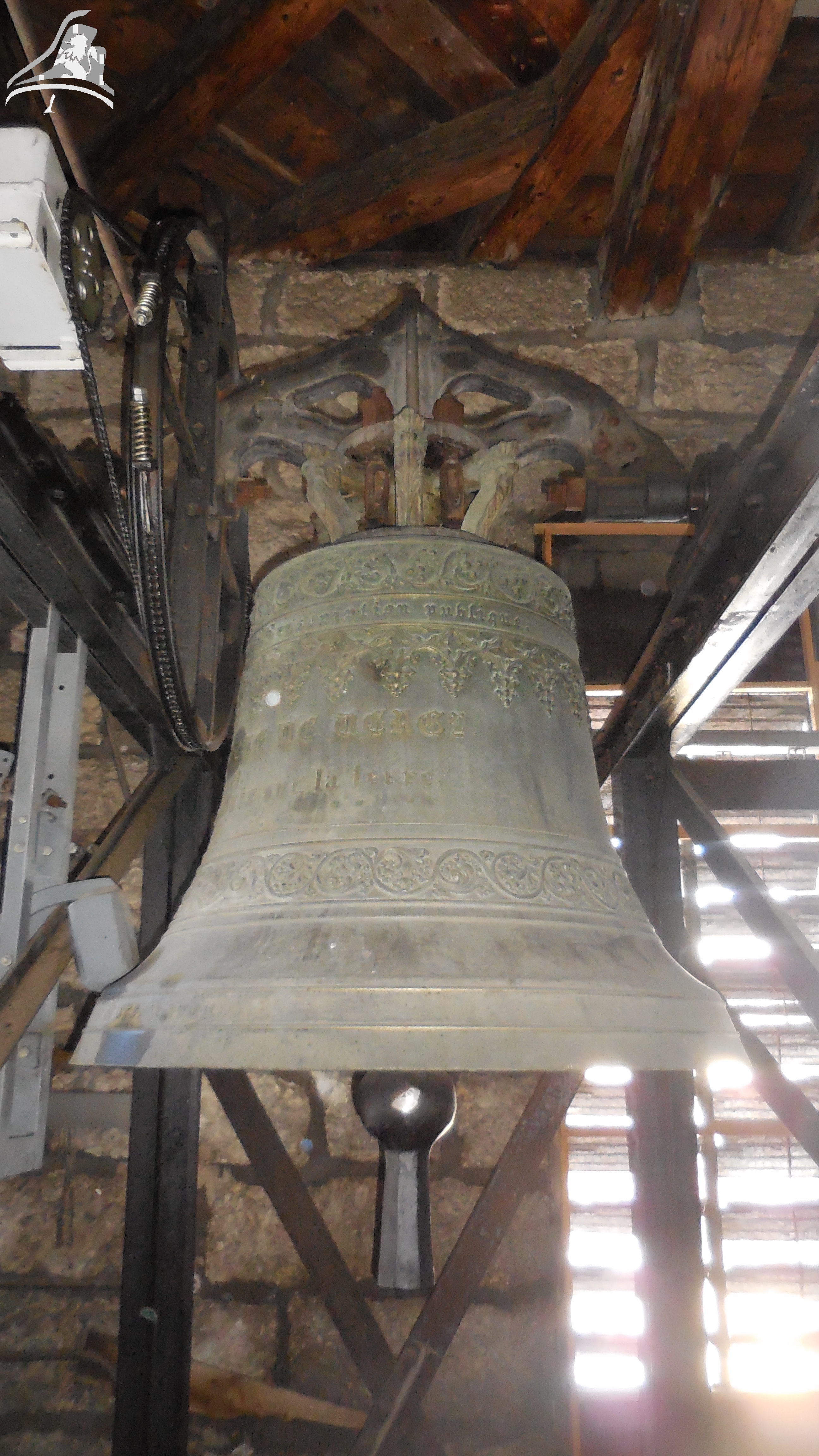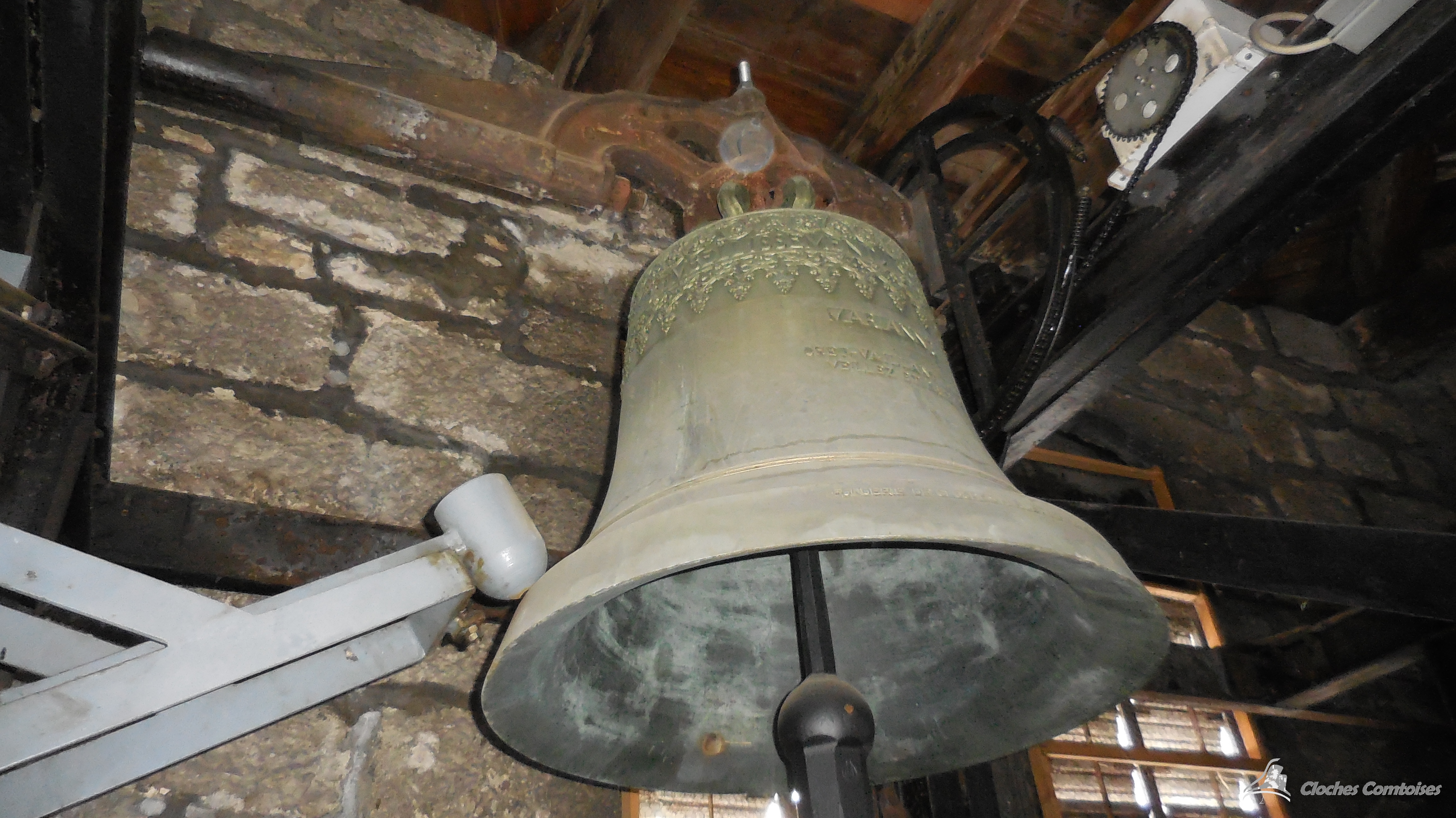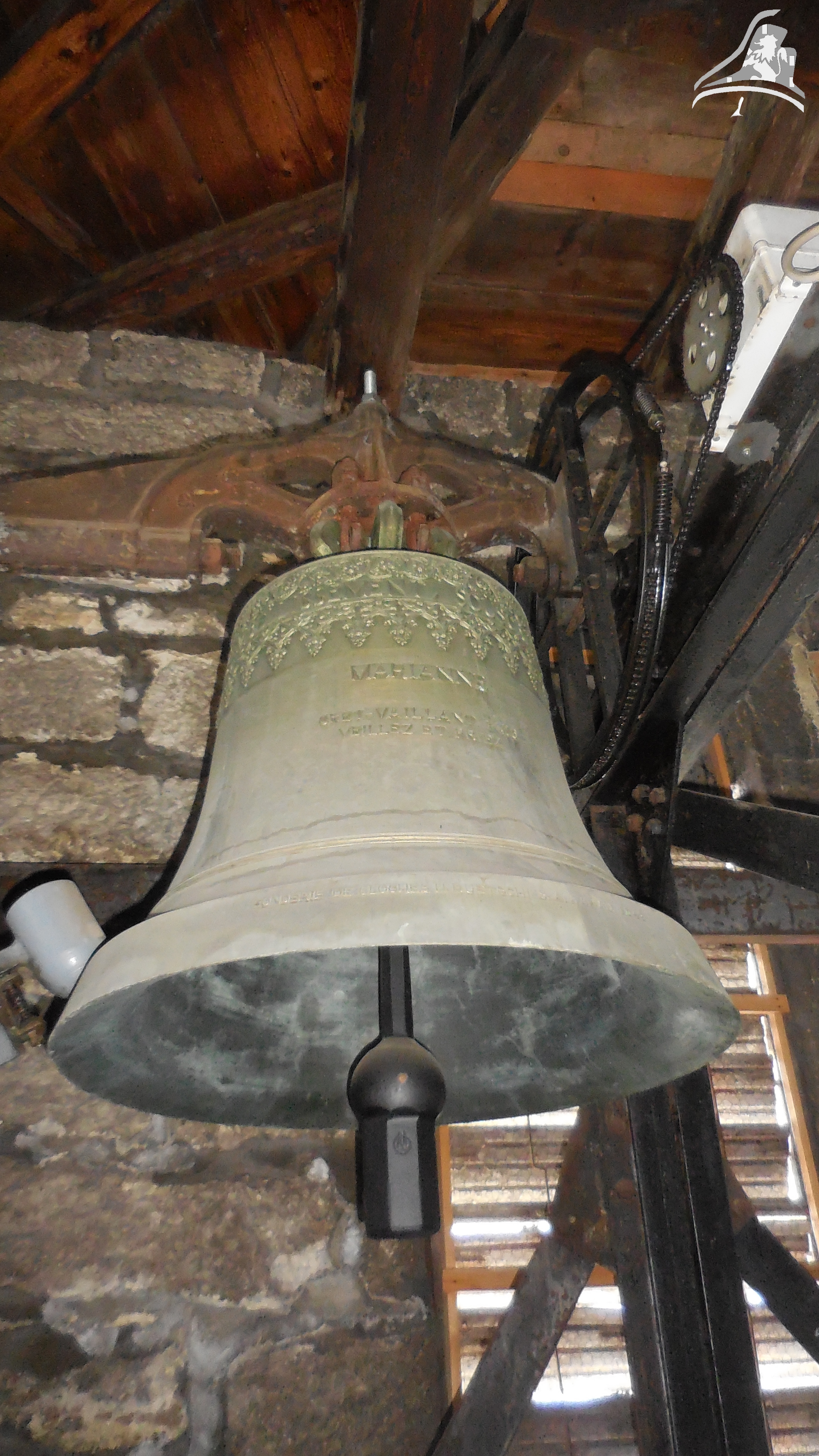Cloche 3: « Guillemette-De-Vergy » Diamètre 115 cm environ, Poids 975 kg, Fondue par Ruetschi Aarau en 1 897, Chante le Fa3