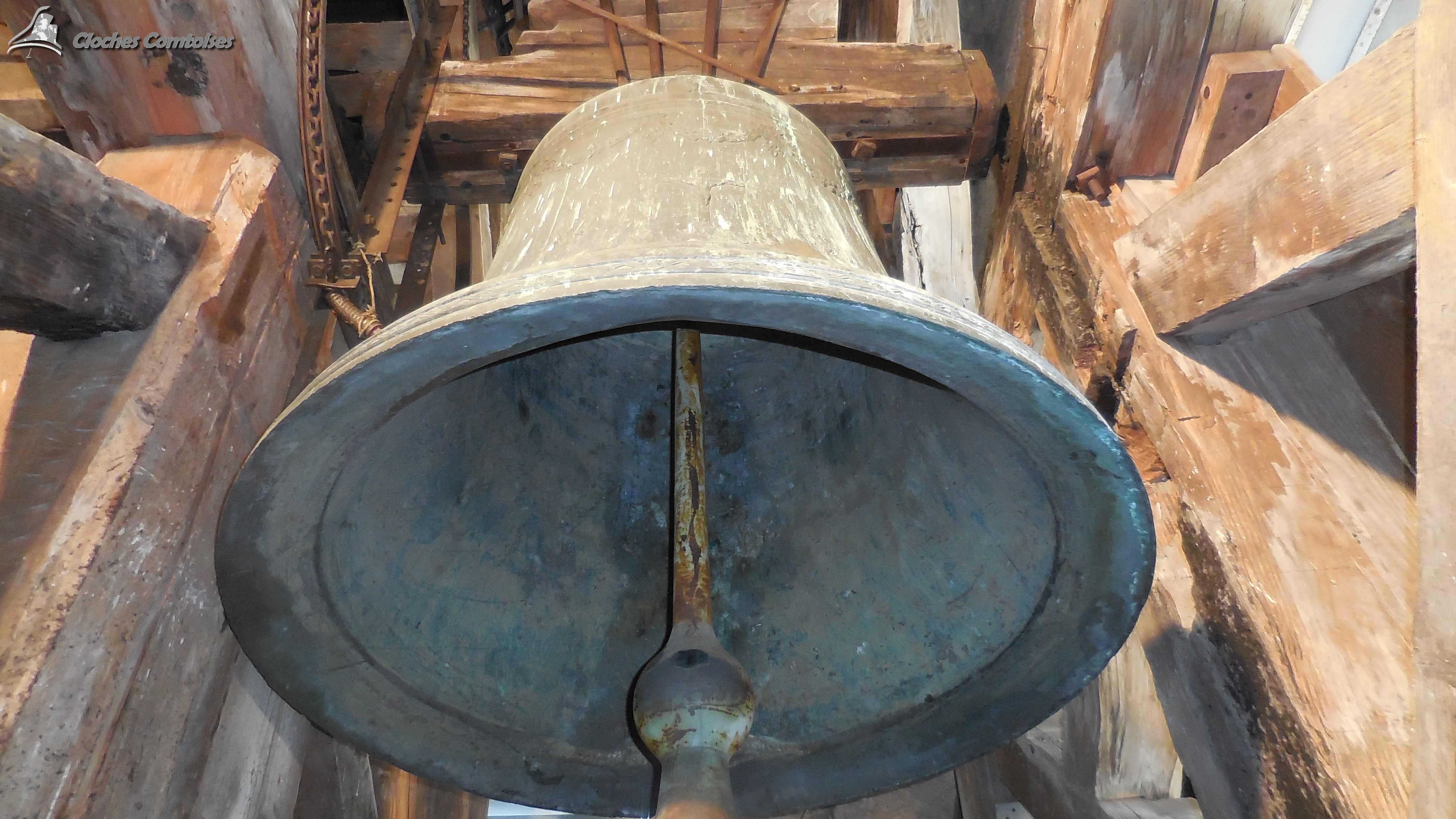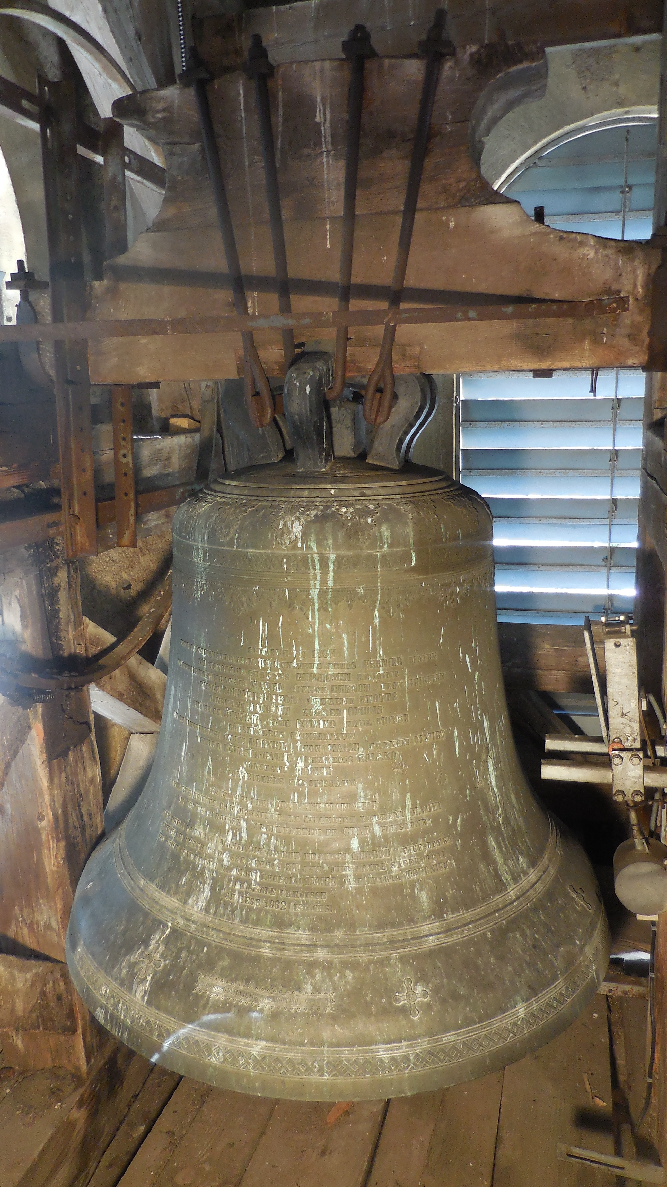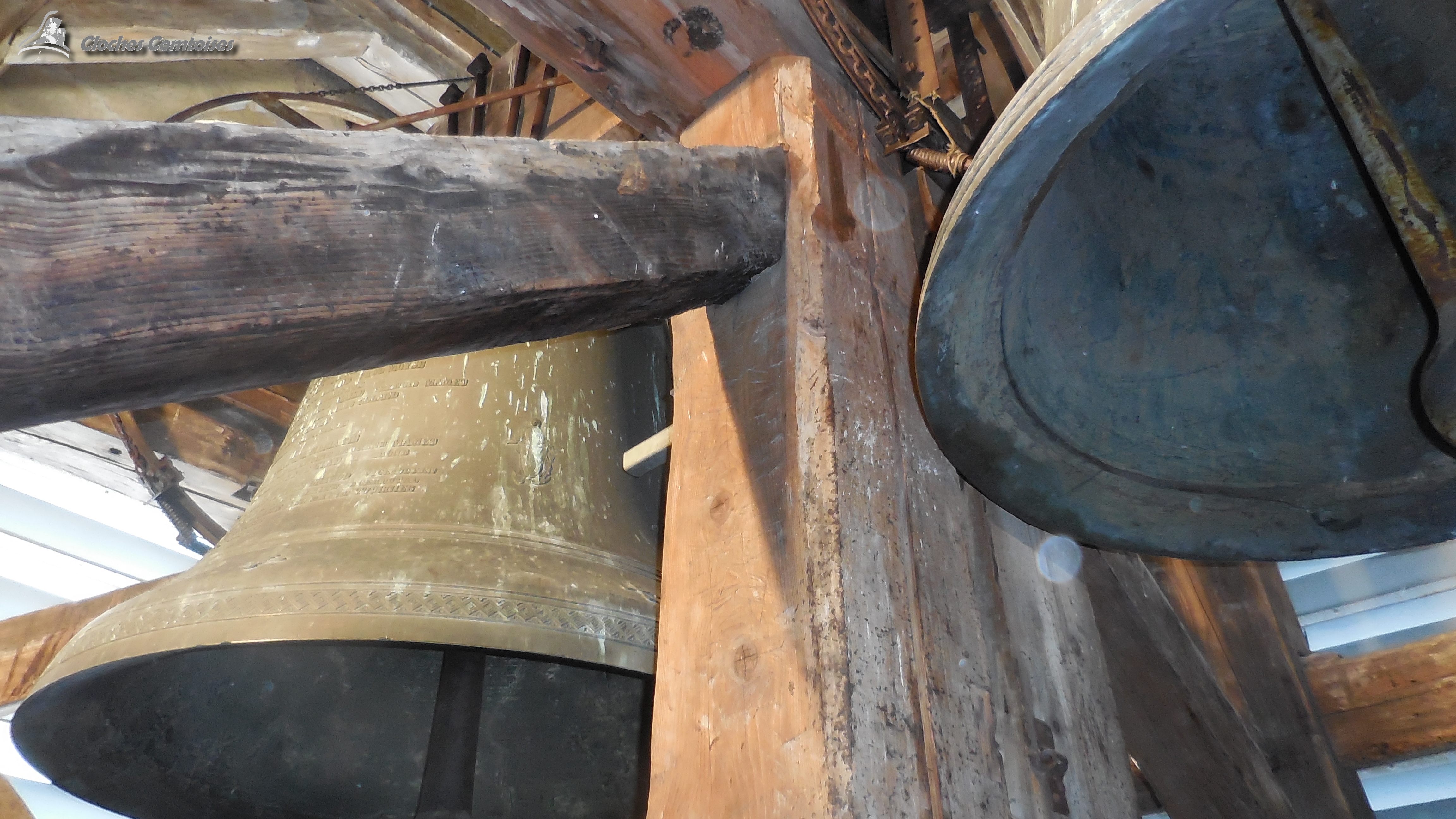 Cloche 2: « Claude-Ferreoline », Diamètre 116,8 cm, Poids 920kg, Fondue par Bournez, à Morteau, en 1 858, chante le Mi3