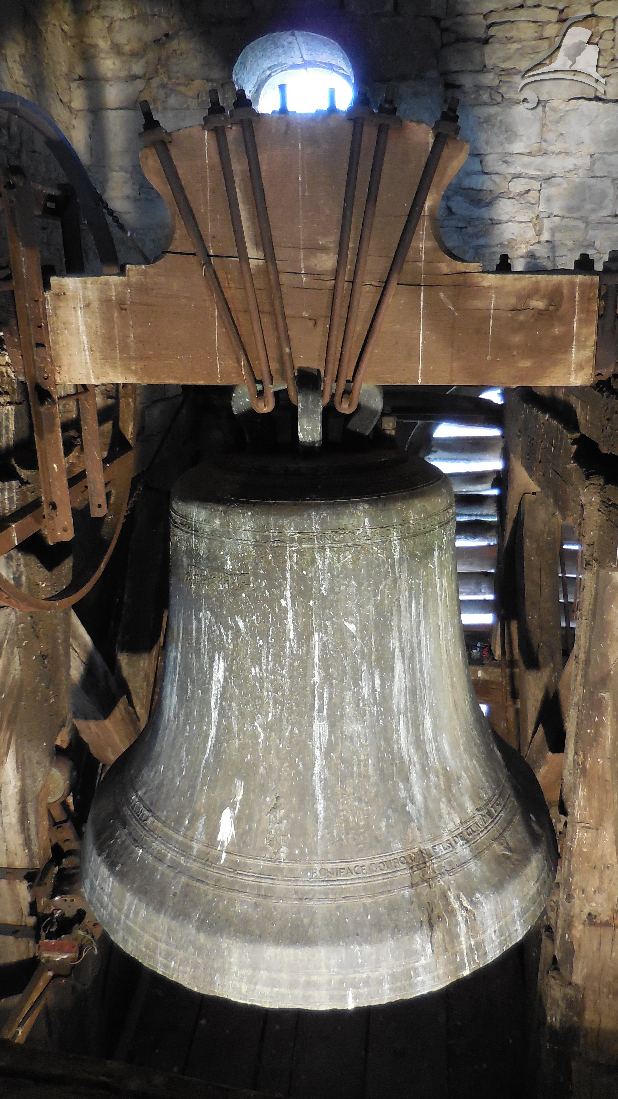 Cloche 1: Nom Illisible, Date: illisible (avant 1789), Poids 1 500kg, Diamètre 133.4cm, Fondue par Boniface Bourquin (Fils de …..) Sonne le DO#3