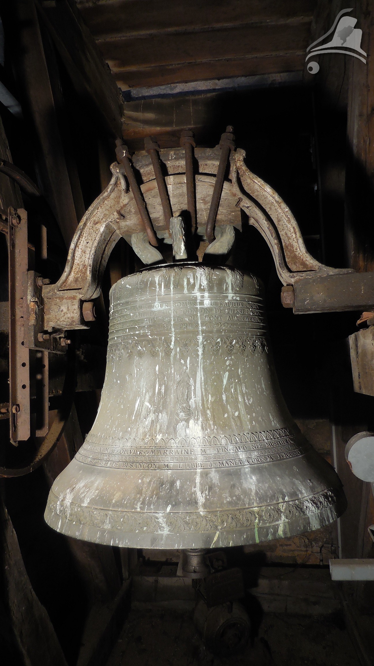 Cloche 2: « Jeanne », Diamètre 105.7 cm, Poids 715 kg Fondue par Humbert à Morteau en 1805, Chante le Fa#3