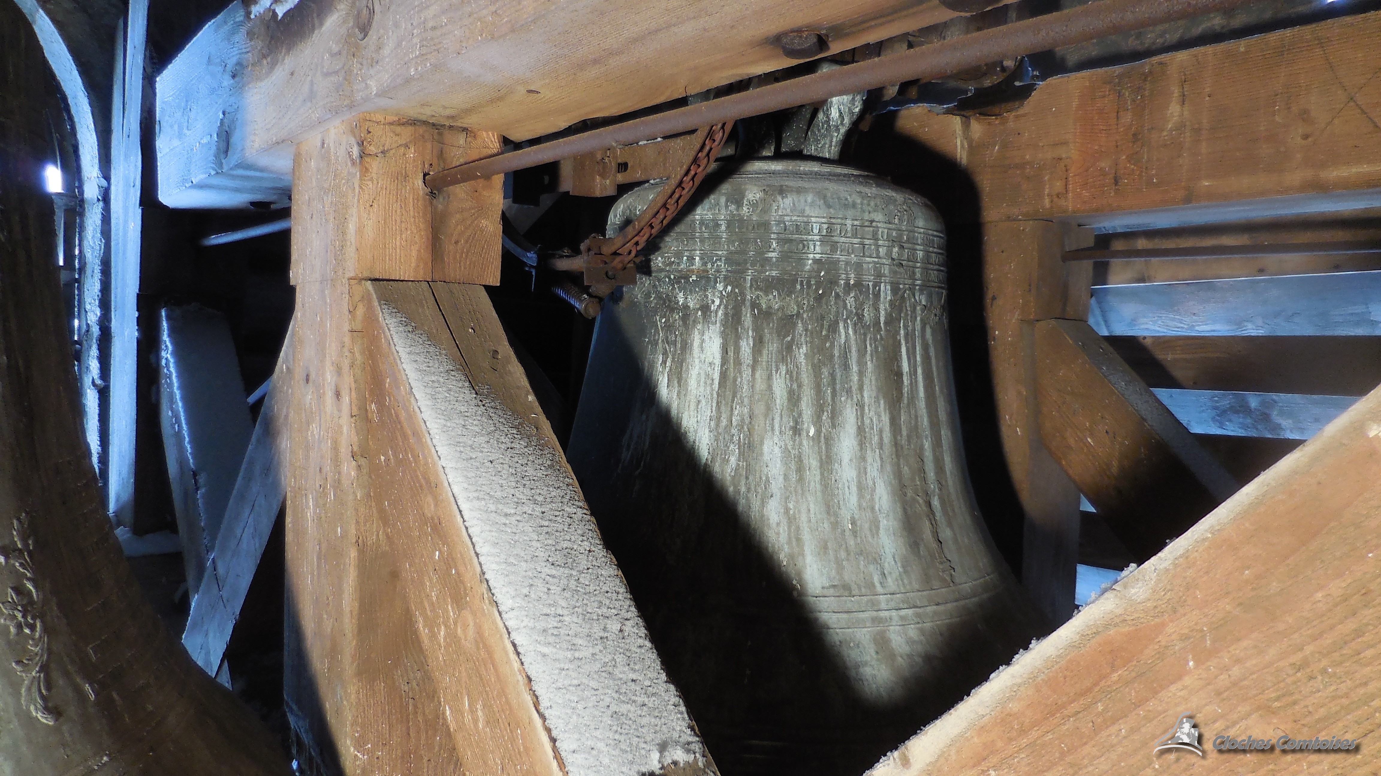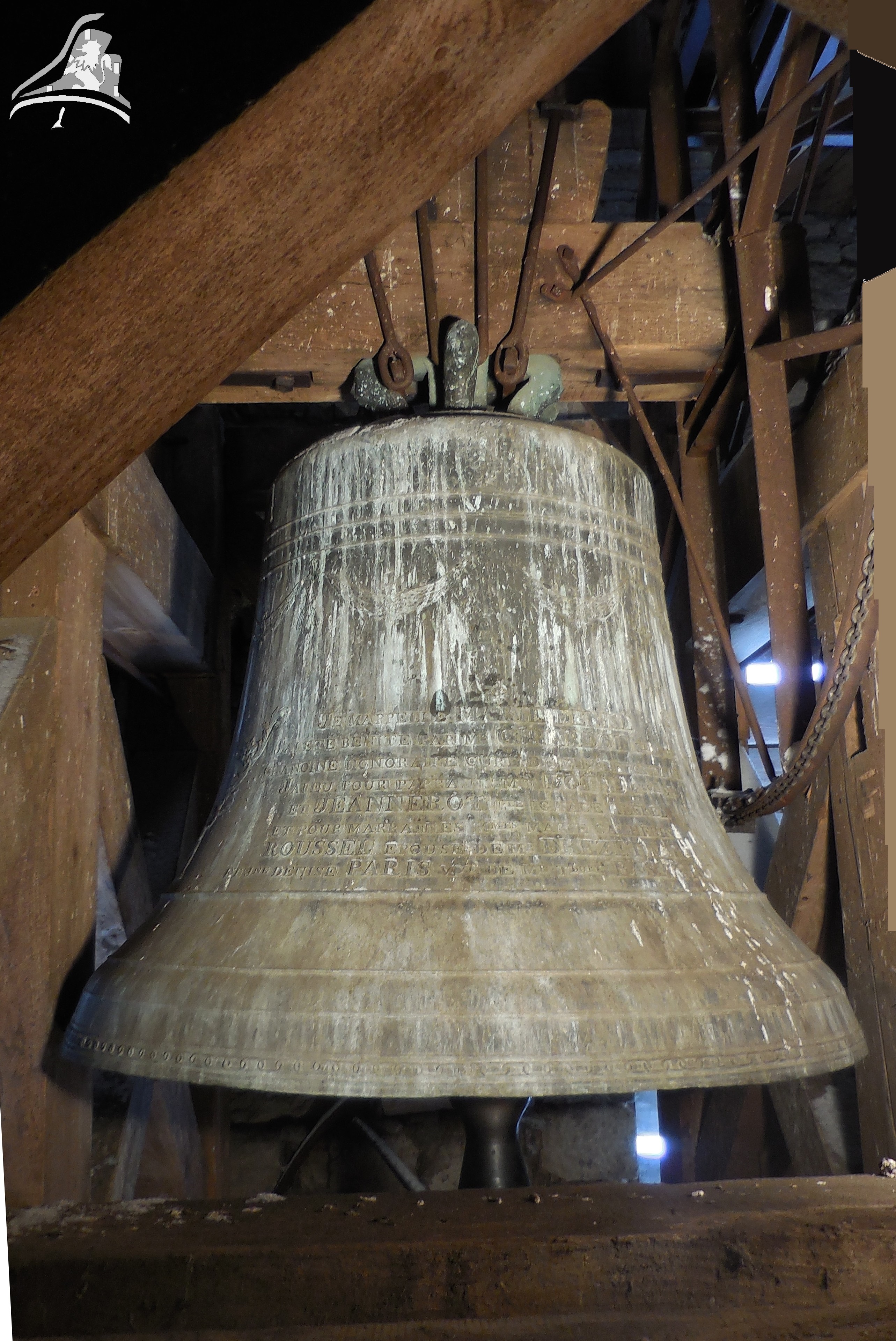 Cloche 1: « Jeanne-Françoise », Diamètre 137,4 cm, Poids 1 480 kg, Fondue par Humbert à Morteau, en 1 853, Chante le Do#3