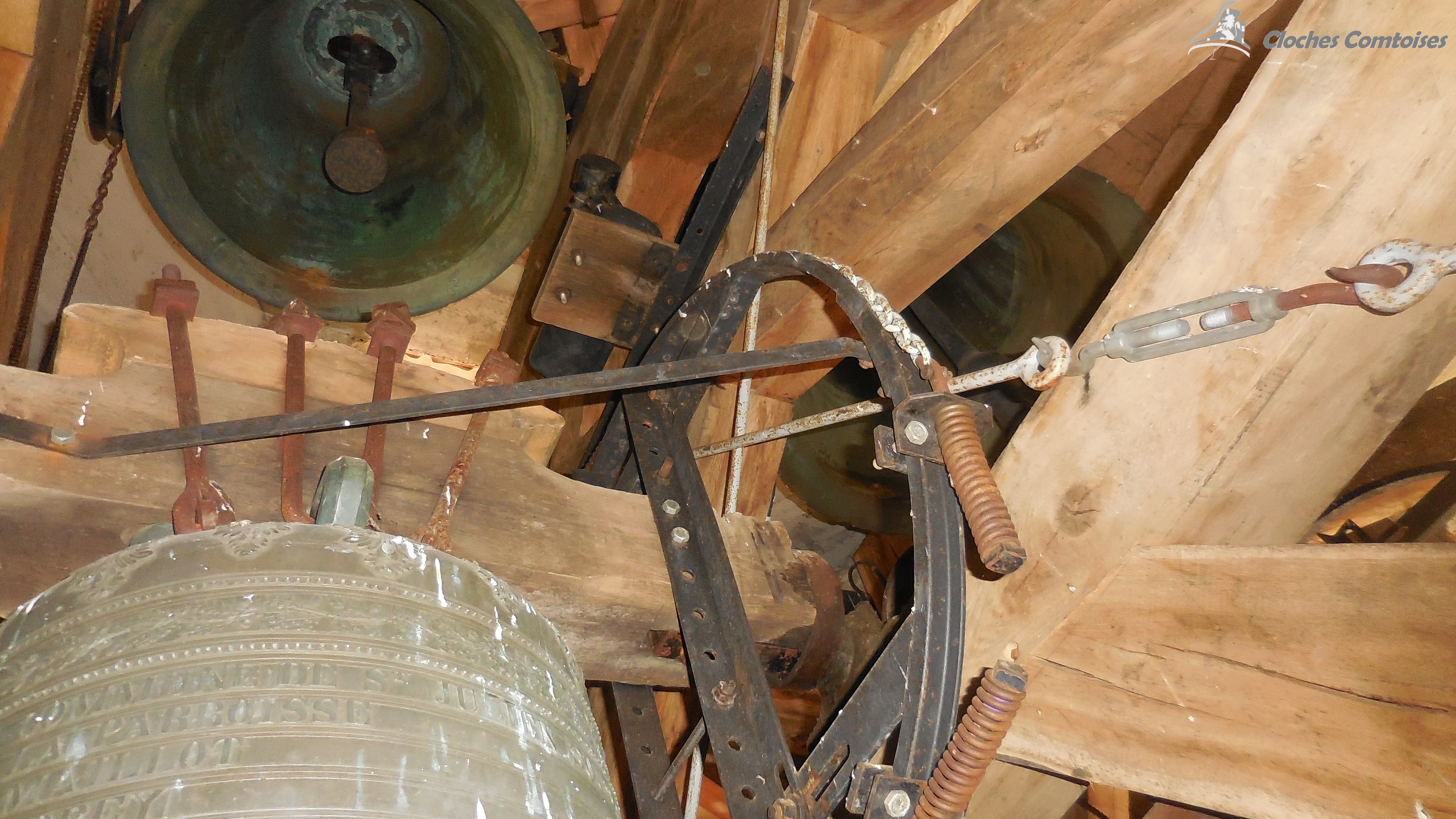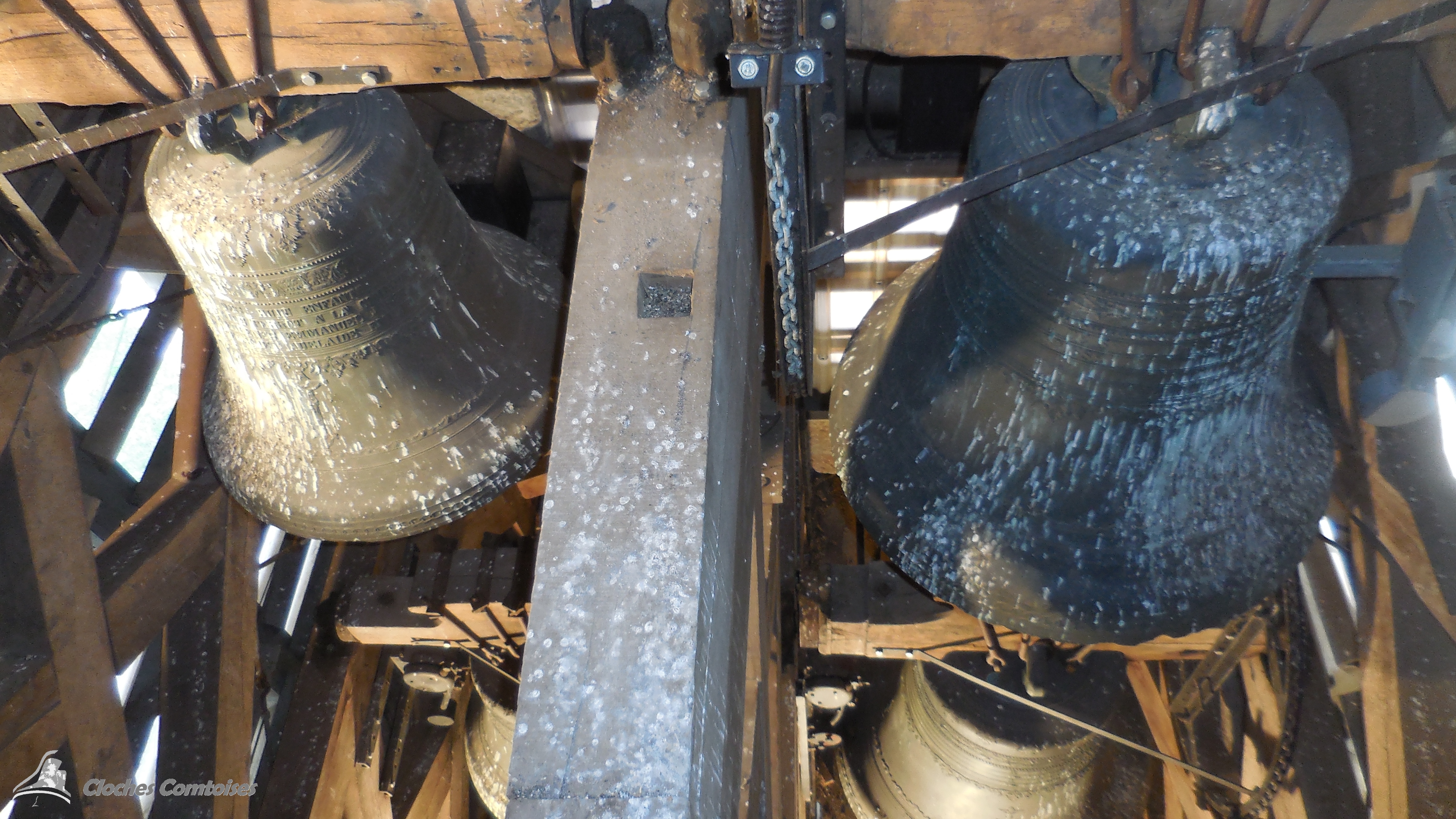 Cloche 4: « Justine-Mélanie-Adelaide-Emilie », Diamètre 72,2, poids 225 kg, Fondue par Perrin-Martin, à Robécourt, en 1 871, Chante le Si3