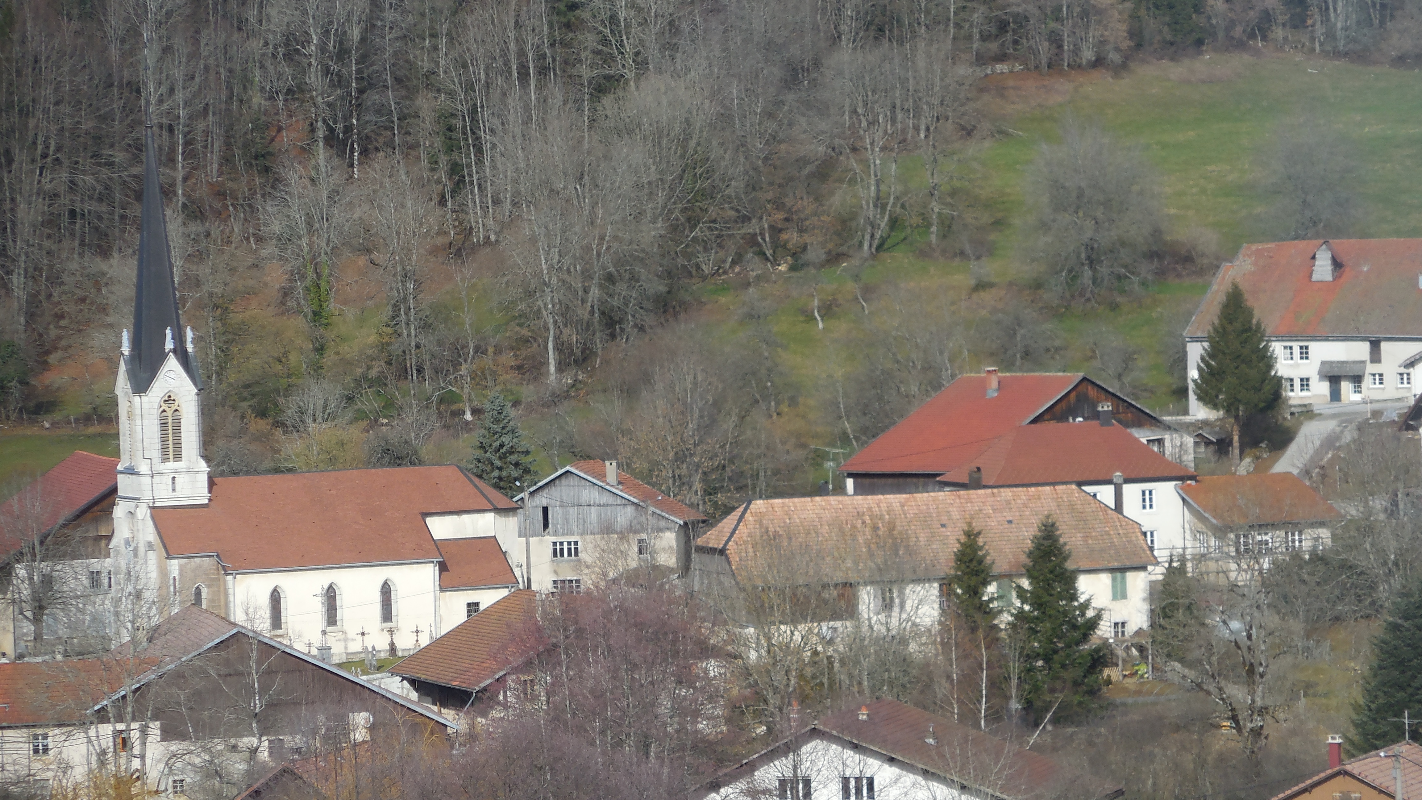 Commune très pittoresque, avec deux fontaines, une église XVIème, une chapelle, un ancien restaurant tout habillé de vigne vierge, des fermes typiques, mais surtout un paysage magnifique avec de superbes points de vue sur la vallée du Dessoubre, des grottes et des sentiers de randonnées à découvrir où l’on peut parfois rencontrer des chamois.
