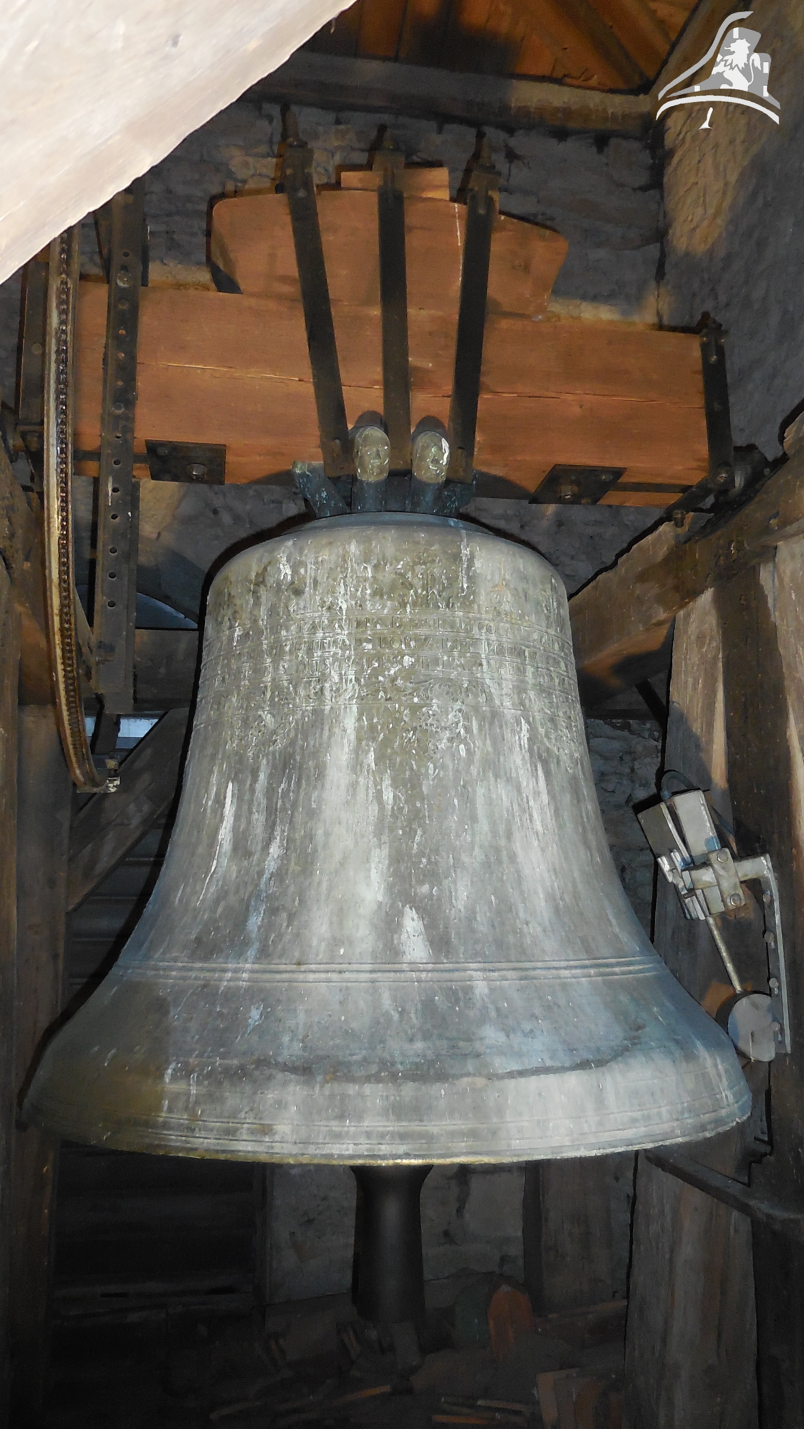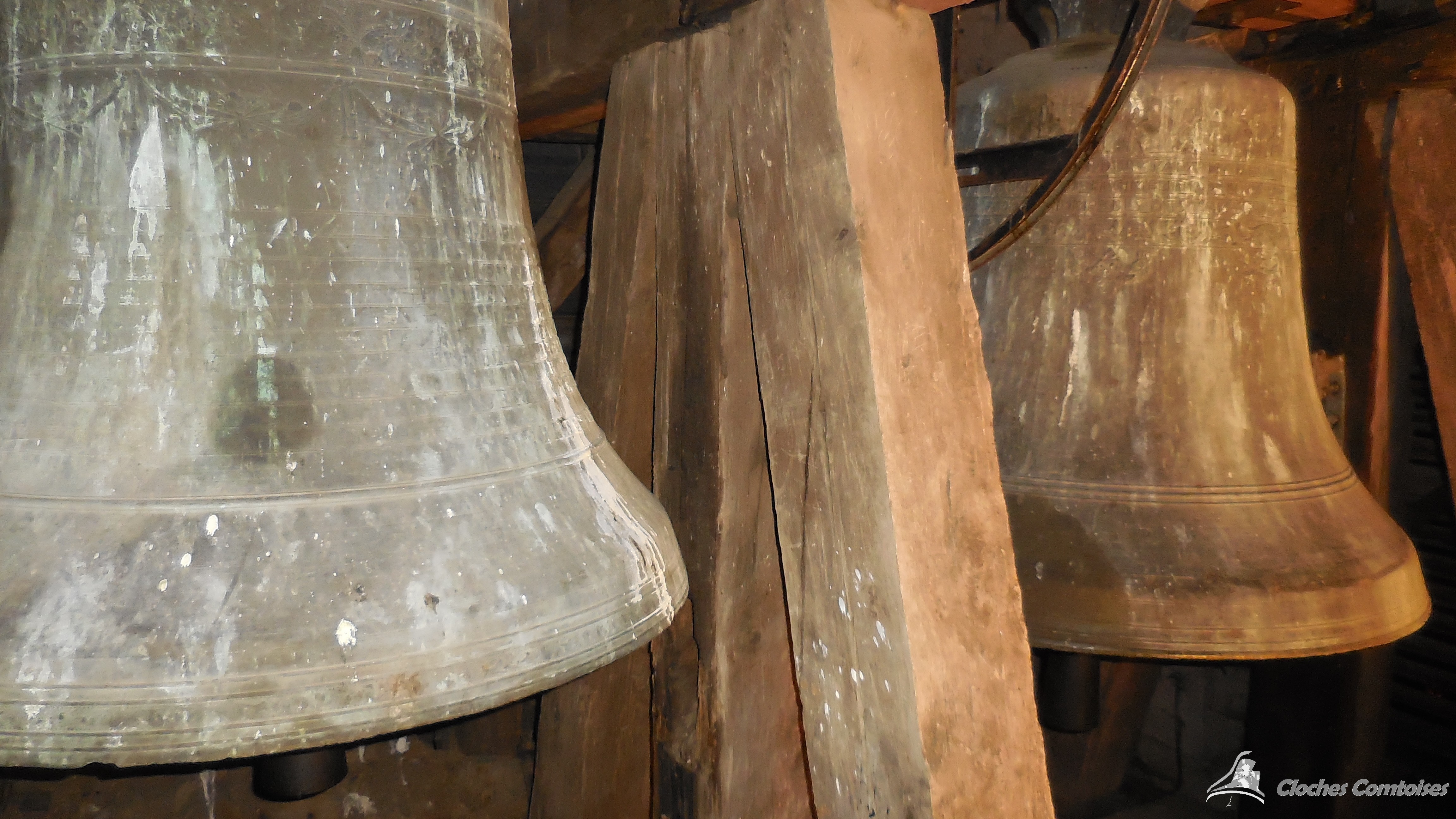 Cloche 2: « Jeanne-Claude », Diamètre 108,1 cm, Poids 745kg, Fondue par Louis Roy, à Besançon en 1 820, Chante le Fa3 (100 ème cloche recensée sur ce site!)